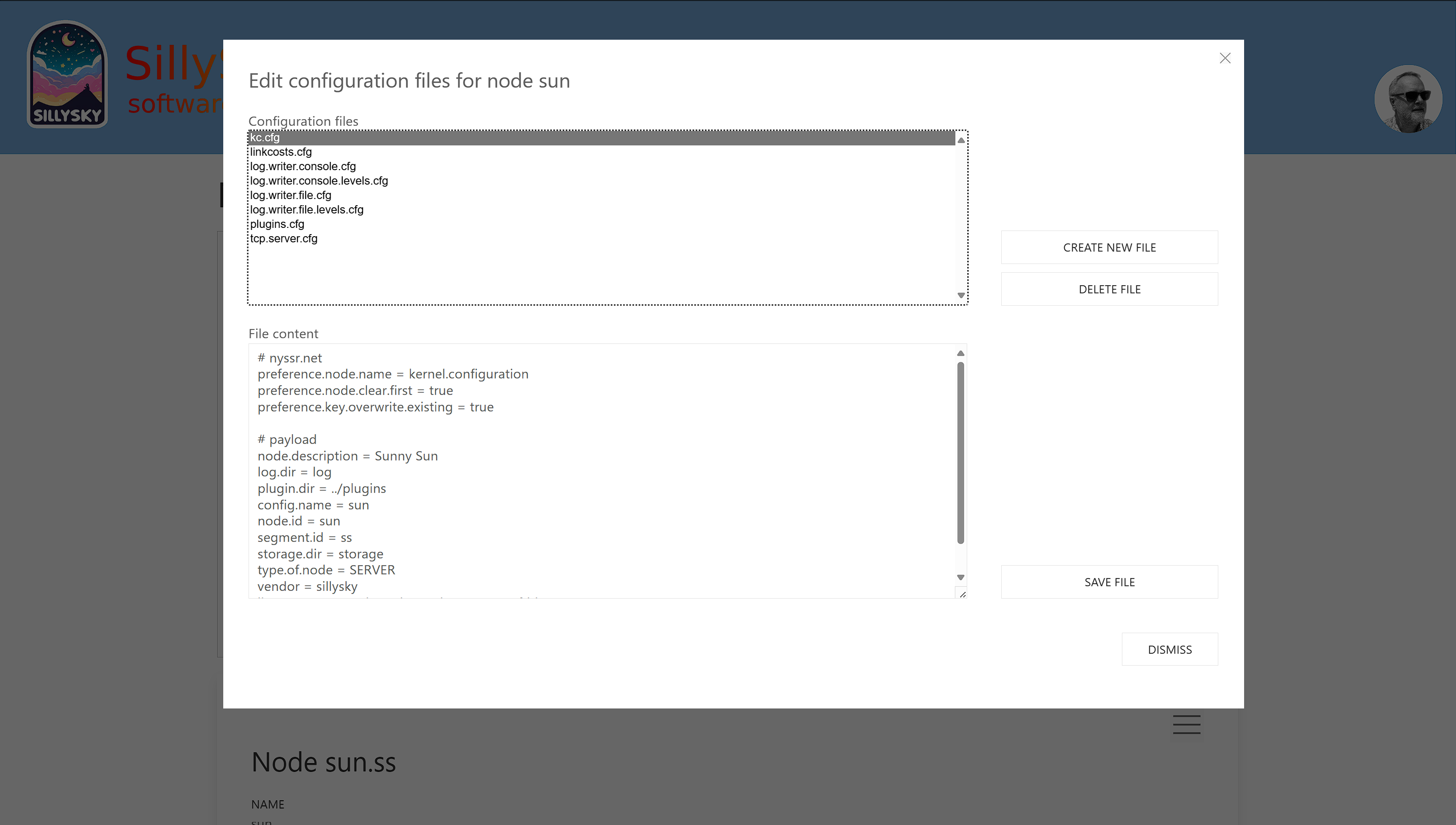 - Editing the configuration files of the selected node. These are read out when the node is booted and the values are transferred to the Java preferences.