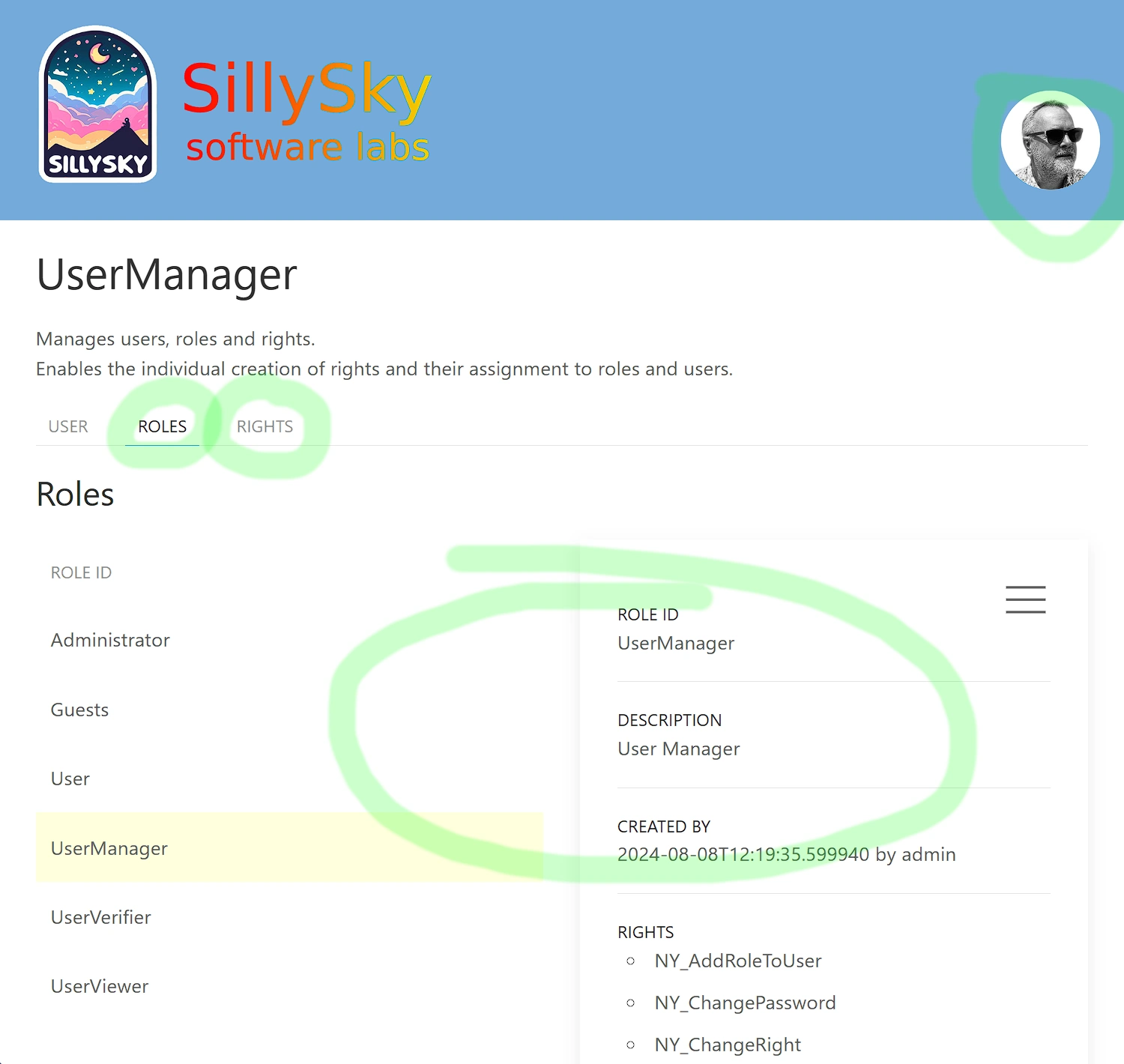 An application is started that enables other applications to be started. In the demonstration, this is only the user management application. You can enter and change users, roles and rights.